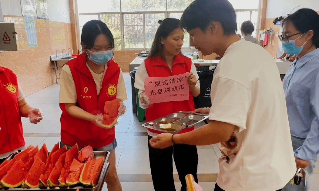 本次主题党日活动还结合志愿服务,在明月食堂中午用餐高峰时设立了“清凉驿站”,全体党员为践行“光盘行动”的师生赠送西瓜,将厉行节约与暖心服务有机结合,以实际行动践行了党的群众路线,赢得了师生们的一致好评。